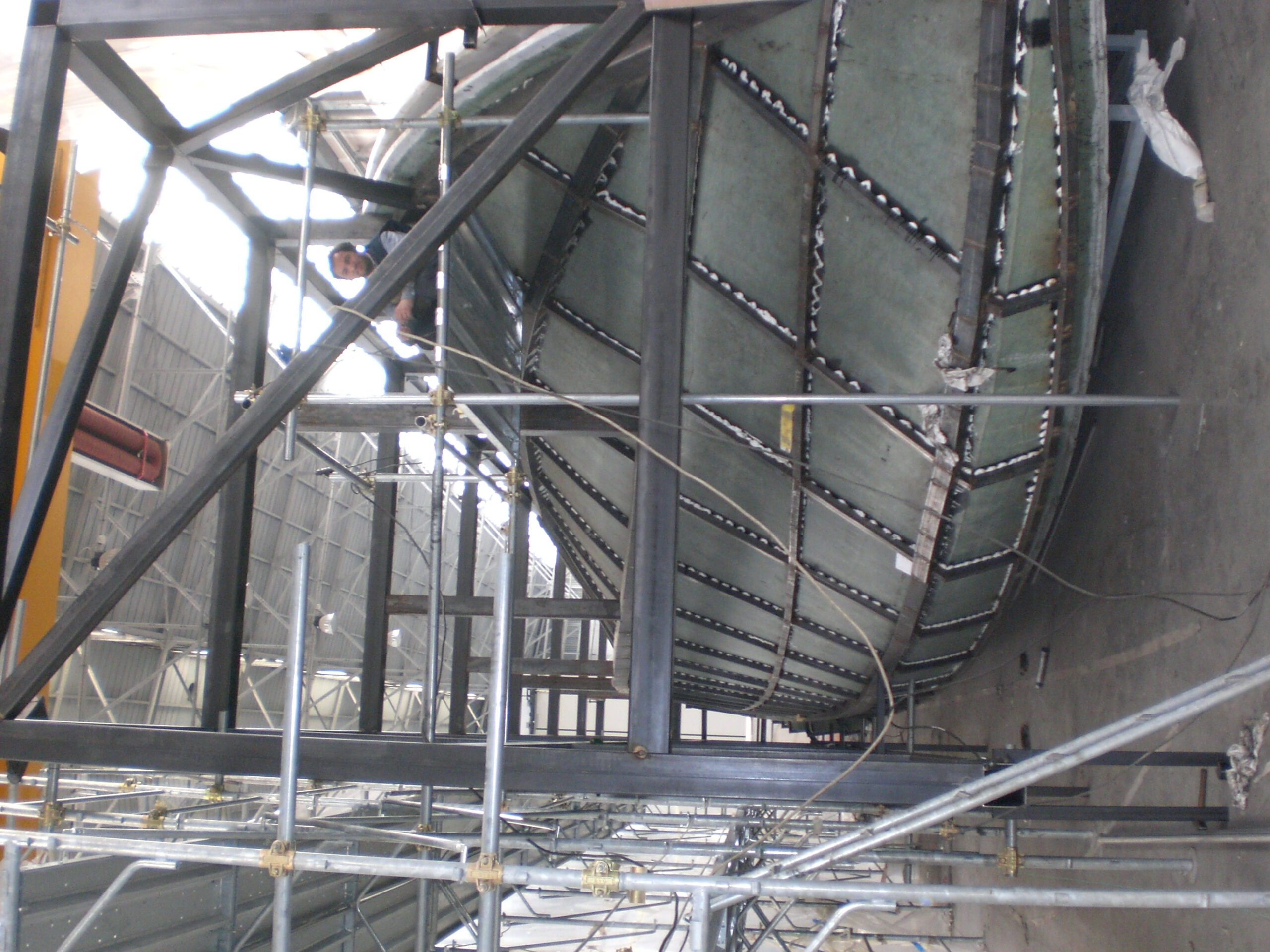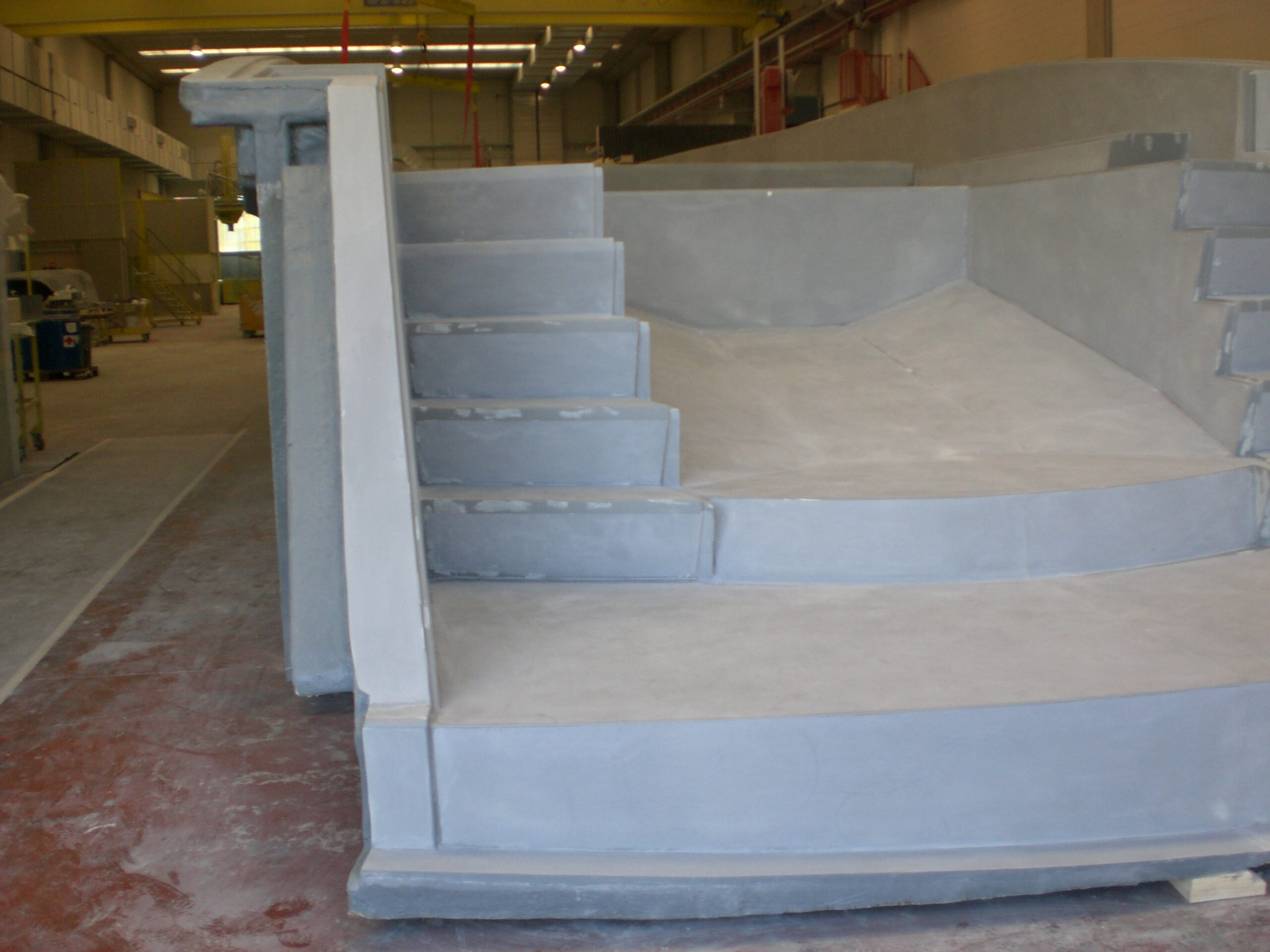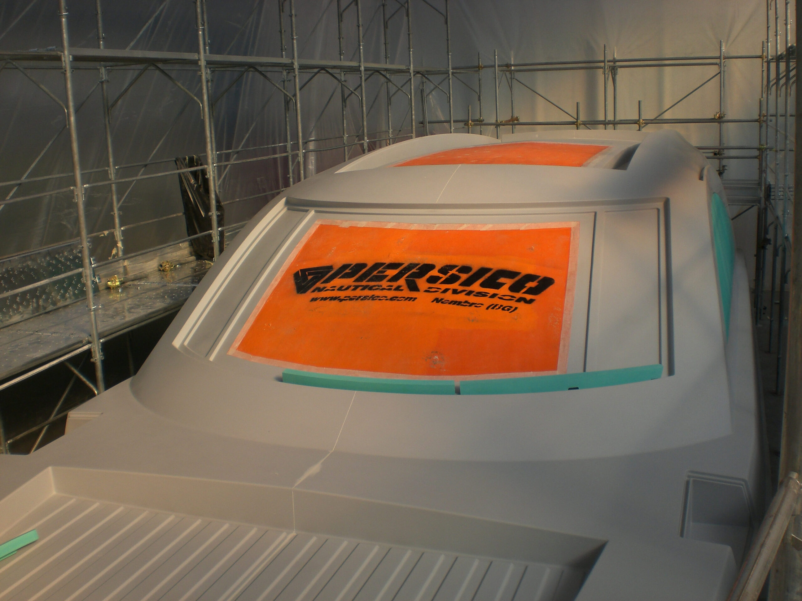 Ogni parte del composito è realizzata in sandwich sottovuoto, con i rinforzi anch’essi costruiti a parte con tessuti preimpregnati ed applicati